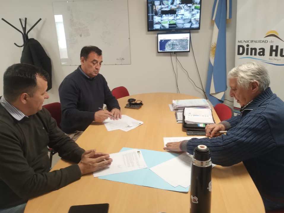 El ministro de Seguridad, Daniel Jara, firmó un convenio con el intendente de Dina Huapi, Hugo Cobarrubia. Gentileza