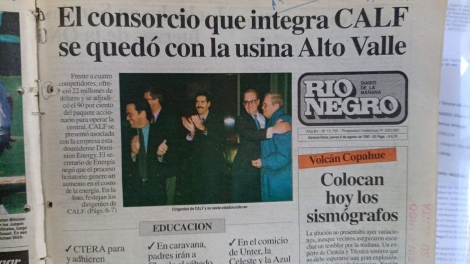 En 1992 integró la empresa que se quedó con la privatización de la usina Alto Vallle. Esas acciones fueron trasladadas a concesionaria de una presa que dejará de existir con la reprivatización.