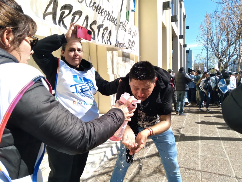 Como saldo del enfrentamiento exterior un docente fue trasladado al hospital Zatti ya que sufrió un desmayo con convulsiones, otros fueron visiblemente afectados por el uso de gas pimienta y se pudo observar varios vidrios rotos en la fachada de la calle San Martín.