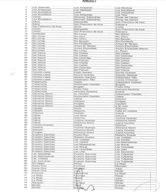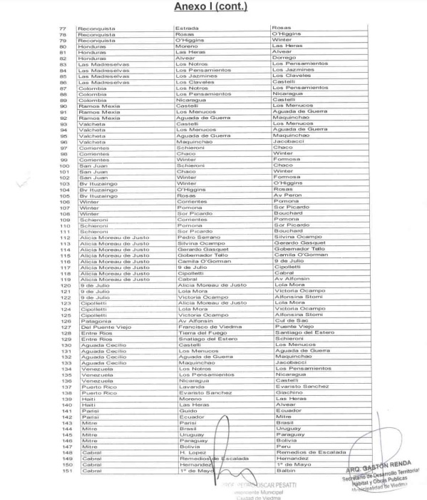 La semana pasada el Concejo Deliberante de Viedma aprobó el listado de 151 calles, ubicadas en distintos barrios de la ciudad, para el cual el cuerpo legislativo municipal las declaró de utilidad pública.