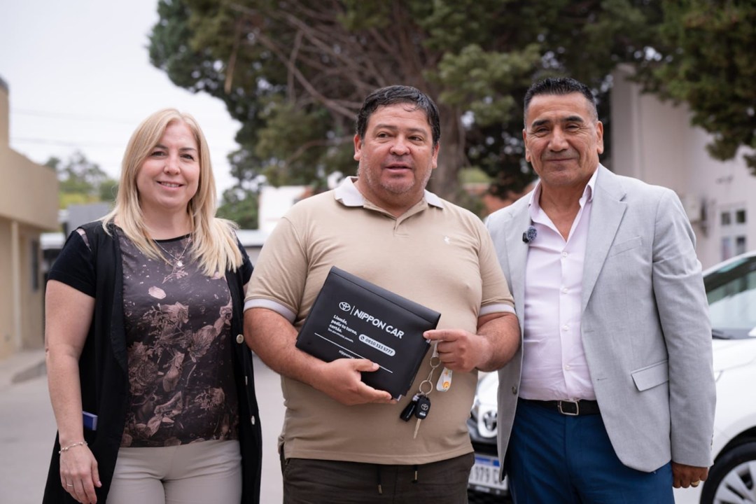 El patio del municipio cutralquense fue el escenario para la entrega de las llaves a Susana Beatriz Rubilar y Reinaldo Obreque, quienes resultaron ganadores del sorteo del Buen Contribuyente Electrónico. Ambos se hicieron acreedores de un auto Toyota Yaris, 0 kilómetro porque cumplieron los dos requisitos exigidos.