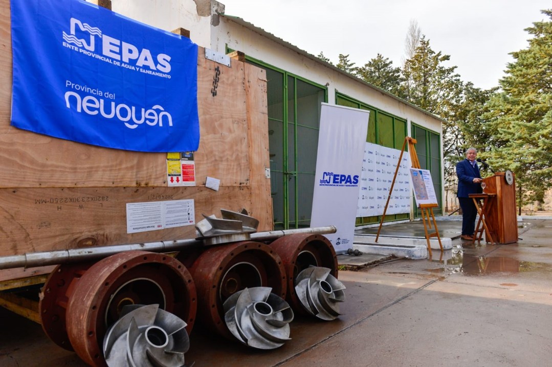 Este miércoles se presentó el motor que será montado al equipo de bombeo y que se sumará a los dos ya existentes en la meseta Buena Esperanza -sobre el río Neuquén- donde se potabiliza el agua y se envía por un caño de 33 kilómetros hasta esta zona.