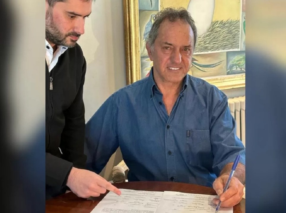 Luego de las críticas, indirectas, a su sector por parte de la vicepresidenta Cristina Kirchner, el embajador argentino en Brasil, Daniel Scioli, firmó hoy su precandidatura a Presidente por el espacio «Unidos Triunfaremos«, en un gesto que mete más presión en la interna, todavía irresuelta, de Unión por la Patria (UxP), la nueva denominación de la coalición oficialista.