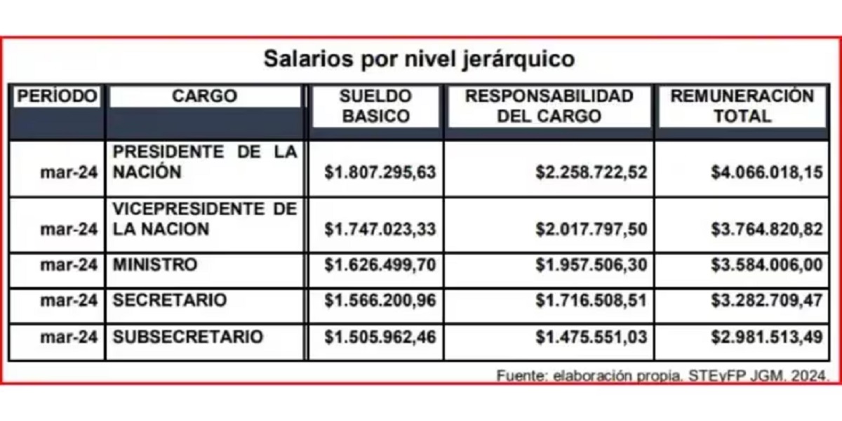 Así, la secretaría de Transformación del Estado y Función Pública se encargó de proporcionar la información mediante una detallada tabla con las remuneraciones correspondientes a los cargos de «Autoridades Superiores del Poder Ejecutivo nacional».