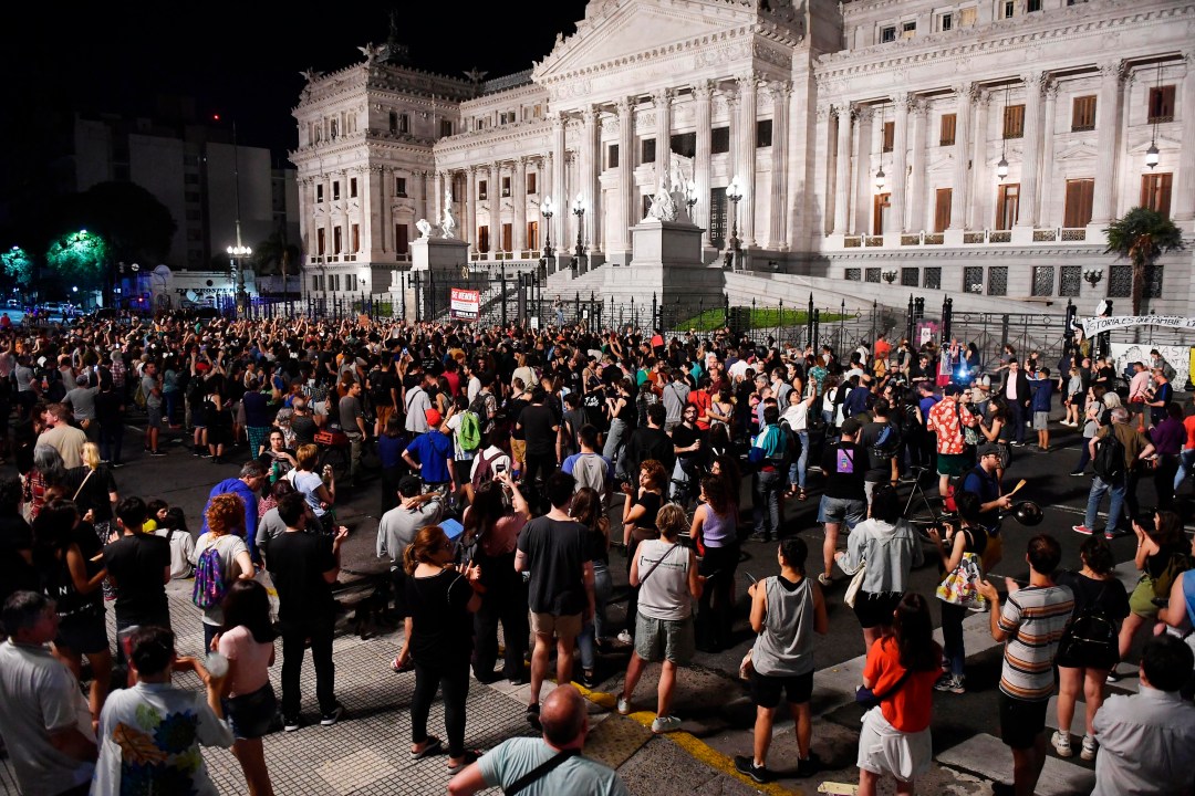 Por su parte, en la explanada del Congreso y en la Plaza del Congreso los manifestantes golpeaban las cacerolas y entonaban cánticos contra el exmandatario Mauricio Macri así como un pedido a la Confederación General del Trabajo (CGT) de hacer un llamamiento a un paro general.