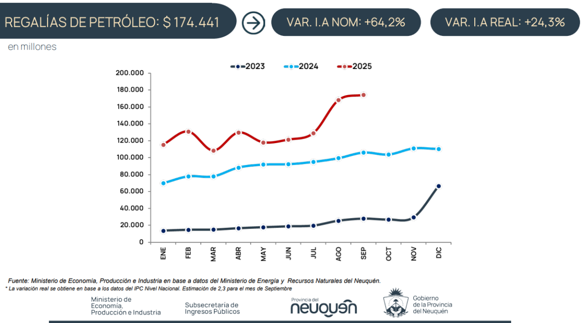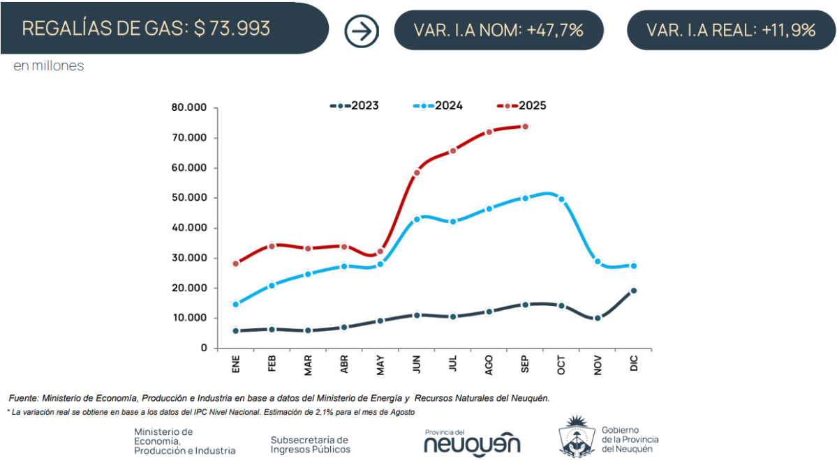 Los recursos corrientes de Neuquén tuvieron un buen desempeño en septiembre, en términos generales, con alzas en recaudación propia y regalías, aunque con un nuevo descenso en la coparticipación federal, si se lo compara a igual mes del 2024.