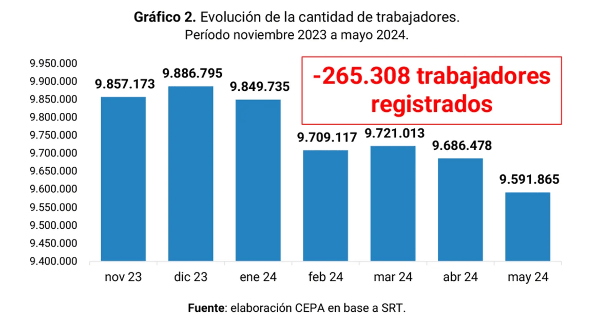 La reducción en el número de trabajadores registrados es notable, con una pérdida de más de 265.000 puestos, pasando de 9.857.173 a 9.591.865.