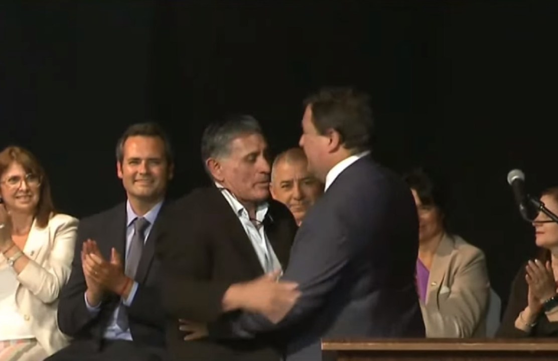El gobernador estrechó un efusivo abrazo con Juan Carlos Scalesi a quien agradeció públicamente su presencia. En el discurso dejó un mensaje a los estatales: «El Estado no necesita hacer más incorporaciones».