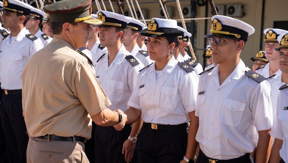 El encuentro sirvió para saludar en cubierta a los Guardiamarinas en Comisión que integran la Promoción 155° del Escalafón Comando Naval, 90° de Infantería de Marina y 111° del Cuerpo Profesional de Intendencia. Estos cadetes del último año de la Escuela Naval Militar finalizarán su formación profesional durante el despliegue para egresar como oficiales.