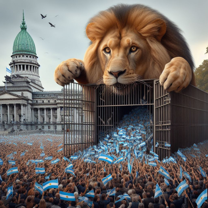A través de su cuenta de Instagram, Milei posteó una imagen en la que se puede observar el Congreso, un león, una jaula y diferentes personas que sostienen banderas argentinas y van hacia allí dirigidos.