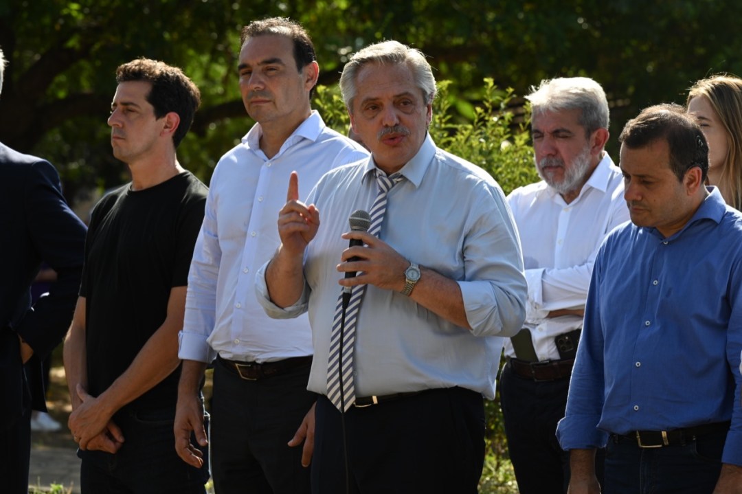 El jefe de Estado llegó al lugar en helicóptero proveniente de la ciudad de Posadas, acompañado por los ministros del Interior, Eduardo «Wado» de Pedro; de Seguridad, Aníbal Fernández; de Ambiente y Desarrollo Sostenible, Juan Cabandié; y de Agricultura, Ganadería y Pesca, Julián Domínguez.