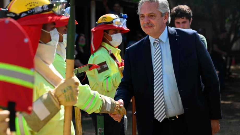 Fernández saludó a la formación de brigadistas que se encuentran en el campamento y luego recorrió las zonas afectadas por los incendios. El jefe de Estado había aterrizado en la capital de Misiones después del mediodía y allí abordó el helicóptero, acompañado por el gobernador de Corrientes, Gustavo Valdés, para dirigirse al campamento montado en la zona de San Miguel.