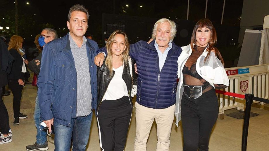 Ni bien iniciado el encuentro, Massa comenzó a saludar a los presentes entre los que se encontraban su suegro, el histórico dirigente peronista Fernando ‘Pato’ Galmarini, quien fue acompañado por su actual pareja, la vedette y conductora Moria Casán.