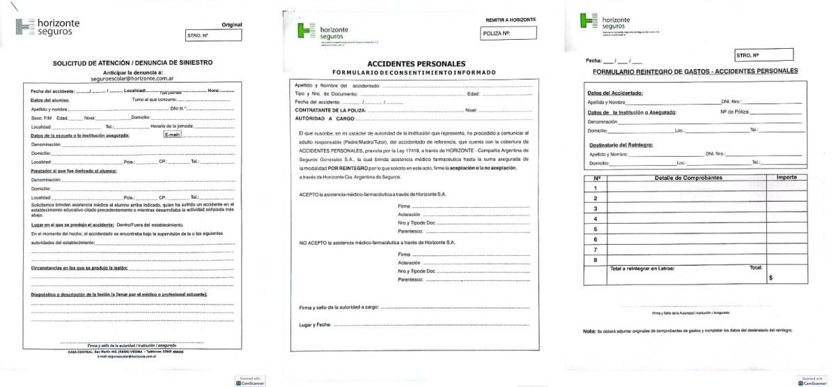 El caso particular de Cipolletti ocurrido en marzo (al igual que otro hecho en Roca) despertó preocupación entre los docentes y las familias porque detectaron que el formulario de “accidentes personales” de la aseguradora provincial Horizonte Seguros tenía un elemento desconocido hasta el momento y es que indica que la “asistencia médico farmacéutica” es bajo la “modalidad por reintegro” (la última palabra aparece en mayúsculas y resaltada con tipografía negrita). La planilla es oficial, entregada por el establecimiento educativo a la familia para la cobertura del siniestro, e incluso está incluida entre los formularios de Salud Escolar disponibles en la web oficial.