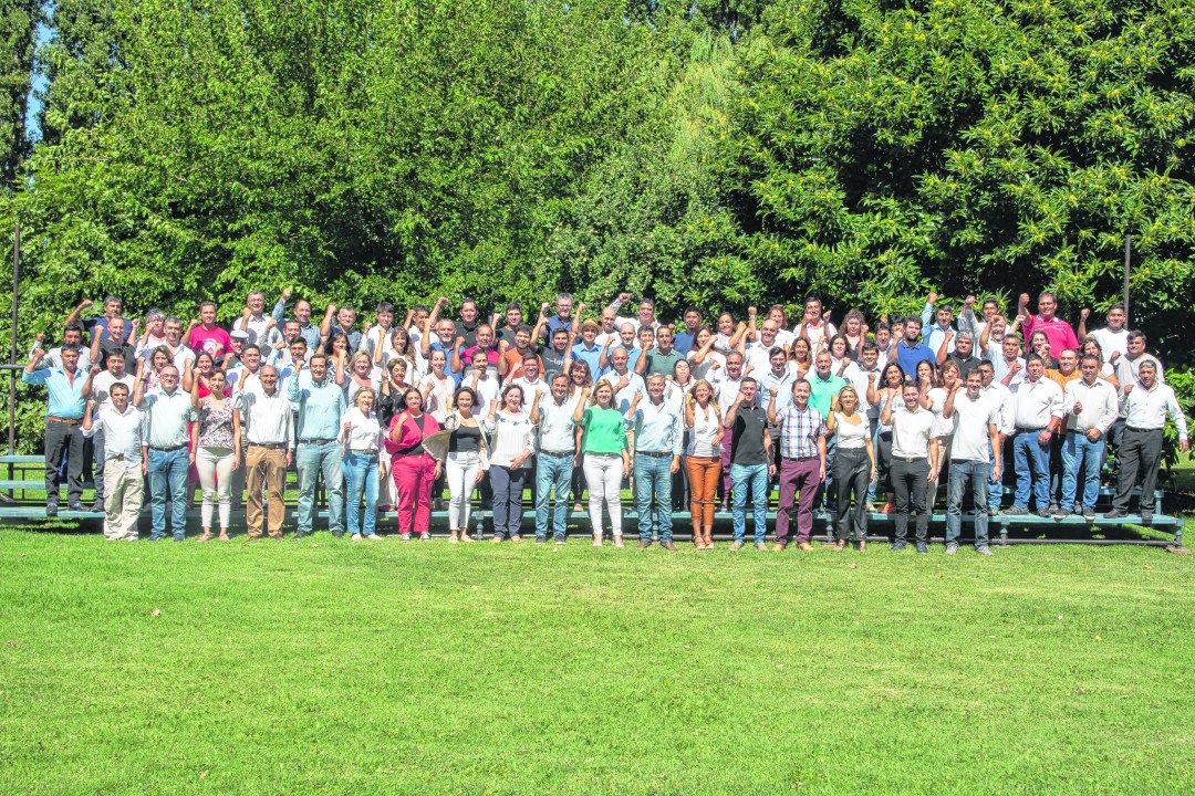 Rolando Figueroa junto a todos los dirigentes de las colectoras y espejos que acompañarán la lista que encabeza junto a la intendenta de Plottier, Gloria Ruiz. Protagoniza una inédita situación electoral porque será una interna del MPN pero con otros partidos.