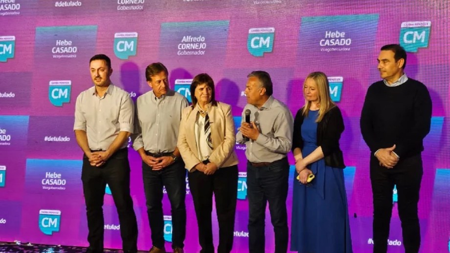 A las 20 llegó Patricia Bullrich a Mendoza para acompañar a Alfredo Cornejo. También se hizo presente en el búker de Cambia Mendoza, el mendocino Luis Petri, vice de la fórmula presidencial de Bullrich.
