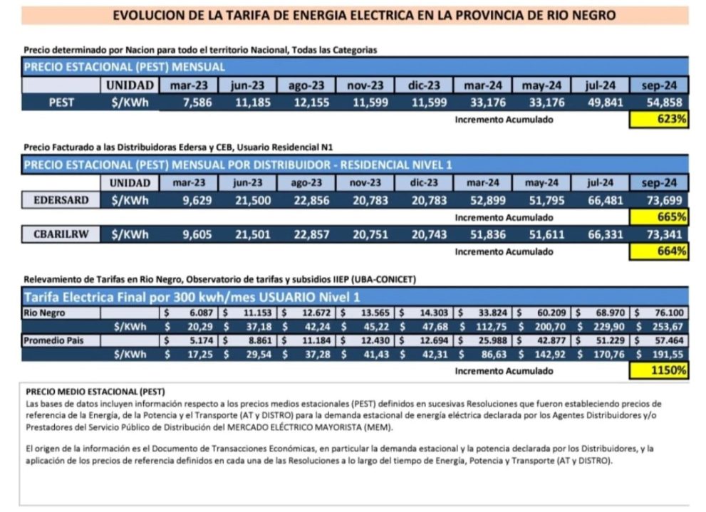 Si bien confirmaron que hubo incrementos del costo de abastecimiento entre un 400 y un 600% —de acuerdo al segmente tarifario—, negaron rotundamente que el precio final a los consumidores rionegrinos registre subas del 1.150% en lo que va de 2024.