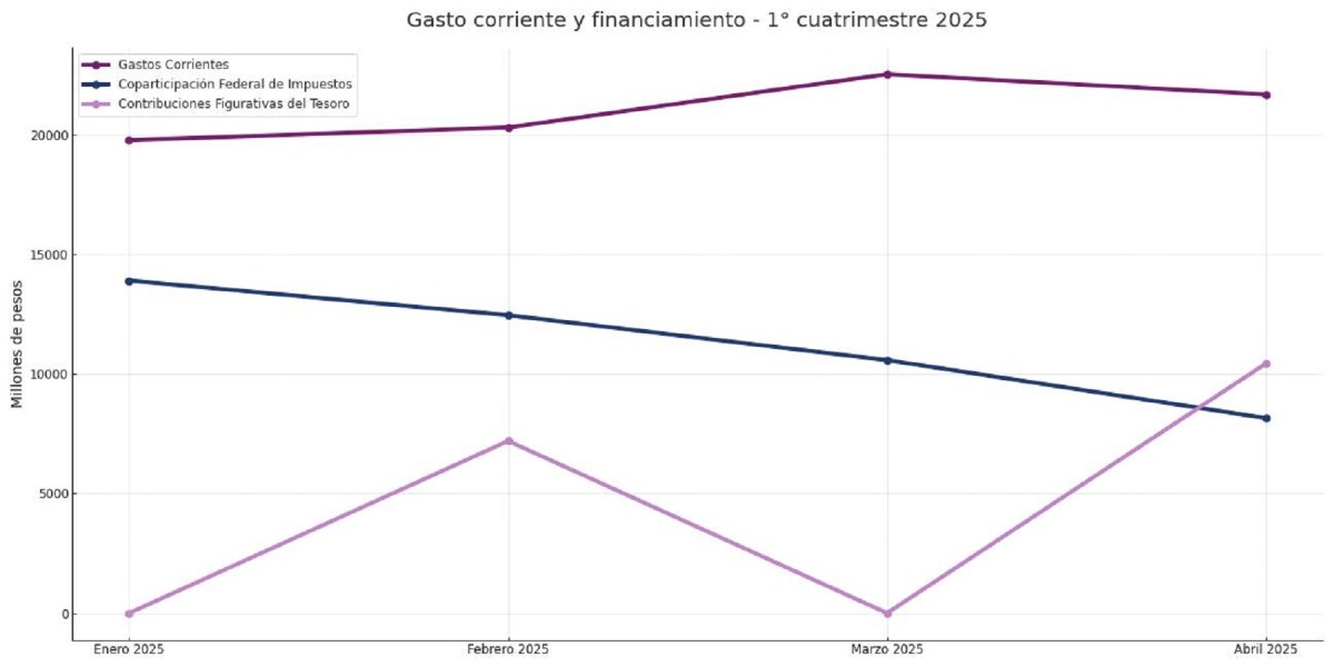 Como se sabe, el Tribunal Superior recibe el 18% de los fondos que le corresponden a la provincia por coparticipación federal de impuestos nacionales. Pero como consecuencia del freno en la actividad económica esos ingresos vienen en picada: de enero a abril de este año, los montos percibidos se redujeron drásticamente, pasando de 13.910 millones de pesos en enero a apenas 8.156 millones de pesos en abril. El gráfico lo muestra con claridad.