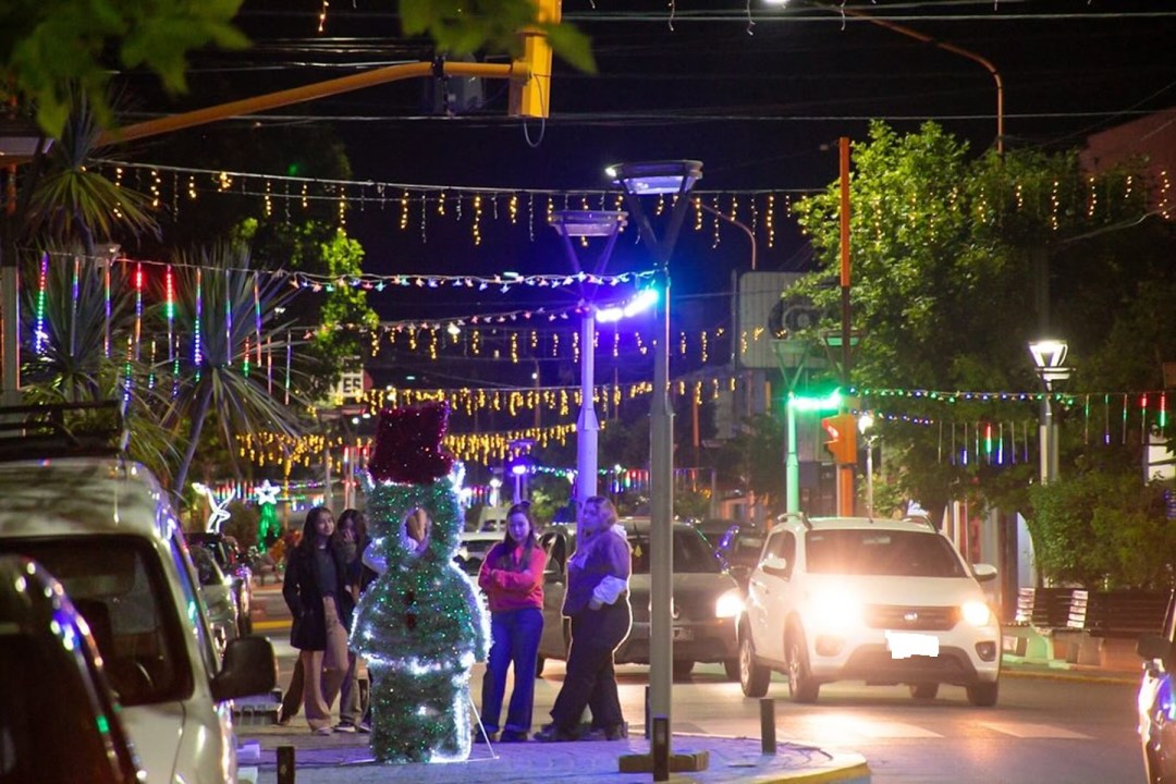 En Cutral Co, se optó por distribuir la ornamentación en la calle Roca, en el tramo comprendido entre Carlos H. Rodríguez y Elordi, que es el sector donde se concentra la actividad comercial.