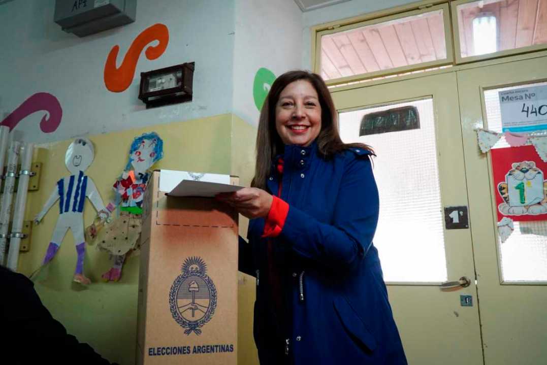 La gobernadora Arabela Carreras votó temprano en la Escuela 321 de Bariloche y dijo tener expectativas por el compromiso de la gente. Foto: Marcelo Martinez