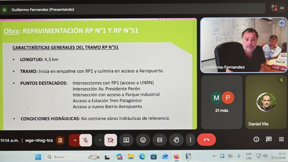 La Dirección de Vialidad Rionegrina realizó hoy, de manera virtual, la «Consulta Significativa del proyecto de repavimentación y refuncionalización de las Rutas Provinciales N° 1 y N° 51» que está contemplado dentro de las obras financiadas por el Banco de Desarrollo de América Latina y el Caribe por un monto total de 140 millones de dólares.