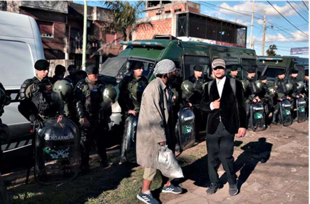 El medio de Buenos Aires indicó que ya desde temprano el predio estaba rodeado por vallas y camiones de asalto de la Policía Federal Argentina (PFA). Se sumó un vehículo de la Prefectura Naval Argentina.