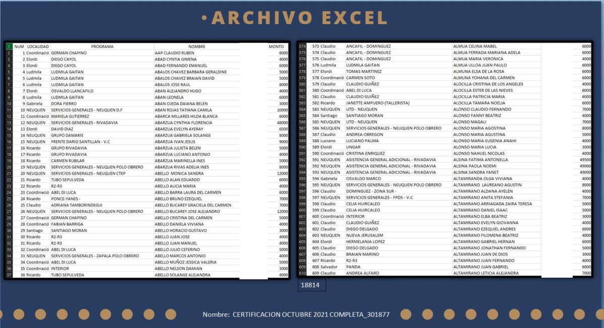 En la dirección de Planes Sociales llevaban un riguroso control de quiénes recibían los diferentes subsidios que entregaba el gobierno de Neuquén. Además en planillas de Excel con celdas pintadas de diferentes colores consignaban otros datos que parecen más vinculados con la estafa que se juzga por estos días: cuántas tarjetas tiene cada empleado, cuánto dinero extrajo el "día uno", el "día dos" y el "remanente", y anotaciones como "33 suspendidas, 1 tragada".