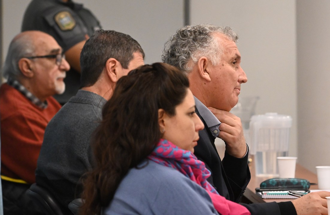 Gustavo Mercado, a la izquierda, con buzo a rayas, en una audiencia en septiembre del 2024. (Archivo/Matías Subat)