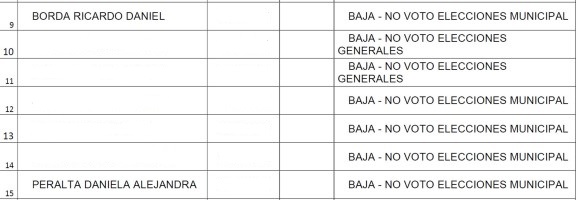 Hay otro archivo «MODELO INFORME_24510» en el que las contadoras observan un listado de personas beneficiarias en el que se «punteaba en cada caso el estado de sus asignaciones, indicando en algunos casos que se les habría ejecutado la BAJA por causales tales como «No votó en las elecciones municipales», o «no votó en las elecciones generales». Fue creado y firmado en diciembre de 2021, de acuerdo a las propiedades del documento.
