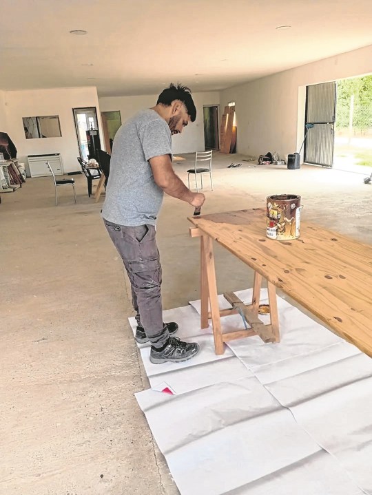 César Parra es conocido por su militancia en movimiento sociales. Representa al Partido Obrero en la lista del Frente de Izquierda para Diputados. El frente alistó un local que necesitaba retoques de bricolage. César se arremangó y no le sacó el cuerpo. barnizó una mesa de madera. No mostró, luego, cómo quedó. ¡A ver….!