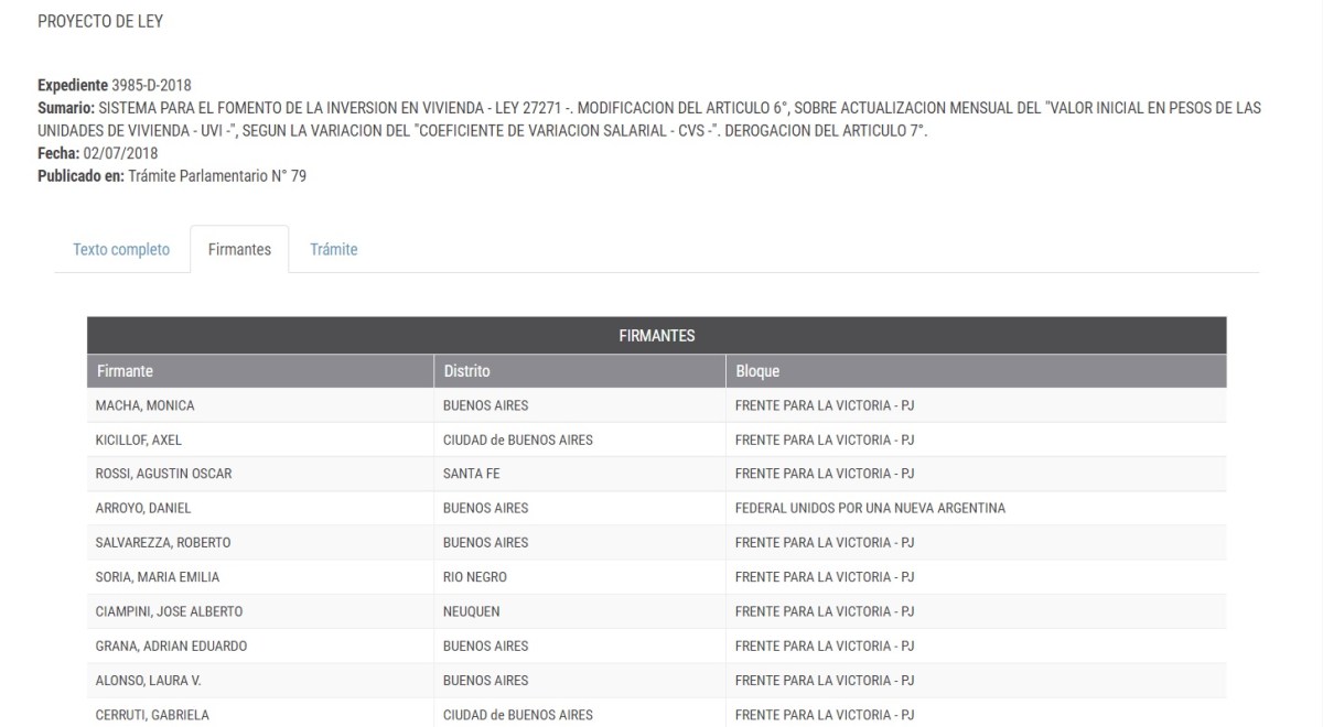 Pero en eso de refrescar el pasado, siempre hay dirigentes con el archivo más activo que otros. Y uno de esos memoriosos viralizó un registro de la web de Diputados del 2018, donde aparece el nombre de María Emilia Soria acompañando un proyecto para reemplazar las UVI por el CVS cuando sea más beneficioso para los deudores.