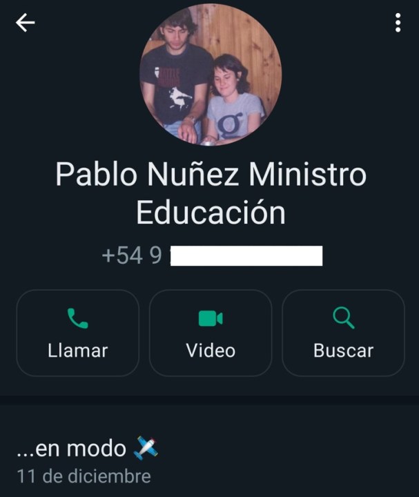 El exministro Pablo Nuñez, dejó el gobierno provincial dos semanas atrás y se especula que pueda regresar a una escuela donde fue directivo antes de sumarse a la función pública. El cipoleño no dejó dudas de su nuevo estado de situación cuando el lunes 11 de diciembre, al día siguiente del cambio de gestión, su perfil de Whatsapp -con una foto de su juventud- indicaba “en modo avión” acompañada por la imagen de una aeronave en ascenso.