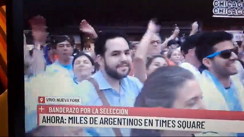 En el Times Square de Nueva York se hacía un banderazo en apoyo a la selección antes de que se enfrentara con Chile. El canal La Nación + transmitía en directo para solaz (y envidia) de los argentinos que no podían estar en ese lugar. Entre los que festejaban con camiseta y todo se observó a alguien muy parecido al secretario General del Sindicato del Petróleo y Gas, Marcelo Rucci, quien no dijo esta boca es mía cuando se difundió el video.