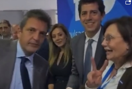 Una amiga le pidió a otra que le hiciera un video cortito con el ministro del Interior Eduardo Wado de Pedro y cuando estaba posando… apareció la cara del ministro estrella del gabinete nacional, tal vez ignorando que las amigas no lo querían en el cuadro. Cuando apareció la cara de Sergio Massa en el cuadro, se notó que las amigas pusieron cara de pocos amigos. Fue cuando Massa dijo: perdón, Wado está fiu fiu para las fotos y se fue a buscar otra cámara.