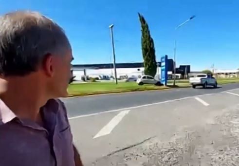 El subsecretario de Medio Ambiente y Protección Ciudadana de Neuquén, Francisco Pancho Baggio, estaba hablando con la reportera Clara Cosentino y la nota salía por TV. Hablaban de los tótem que miden la velocidad y cuentan el 1,5 millón de autos que ingresan por mes. Era a metros del segundo puente. En eso, un auto Ford K color blanco chocó contra un tótem y el ruido hizo que la nota se interrumpiera. Fue una situación tragicómica.