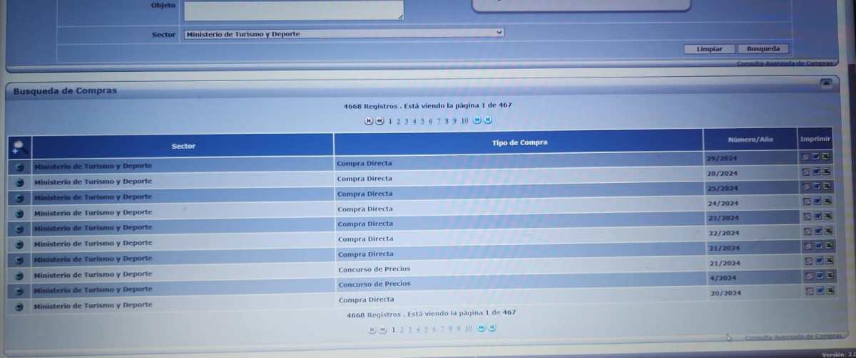 Ahora bien, lo sorpresivo es que lo mostrado por LLA en redes no aparecía ayer en la web oficial del Estado, donde los expedientes de compras de Turismo y Deportes pasaban del 25 al 28. ¿Orden de borrar todo y recalcular? Parece que sí.
