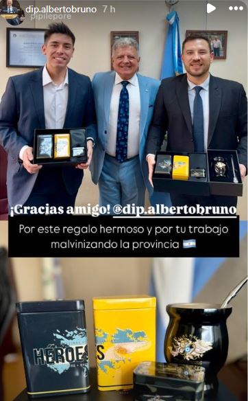 El diputado Alberto Bruno (Hacemos Neuquén) se caracteriza por sortear las reglas del protocolo y siempre se toma la libertad de hacer obsequios a las personas con las que tiene afinidad y con las que pretende que tengan en cuenta su reclamo. Bruno es veterano de Malvinas y lucha contra la desmalvinización desde un costado agradable. Les regaló a algunos legisladores un set de mate, bombilla y yerberos muy vistosos. ¡Hay que andar bien con Bruno!