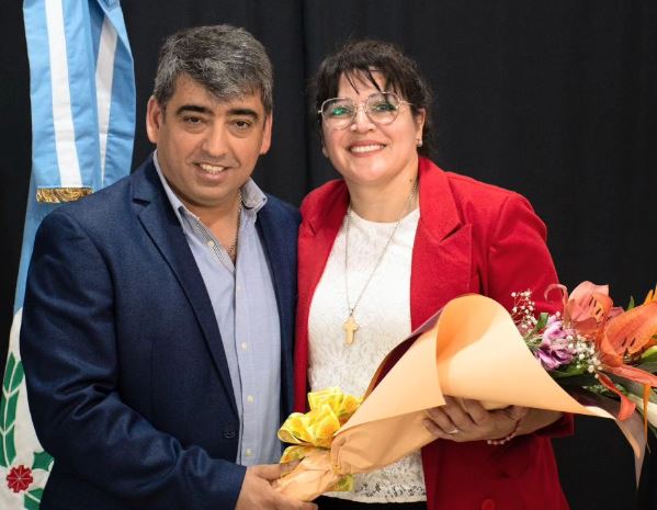 Perla Díaz fue saludada por el intendente saliente, Carlos Casteblanco.