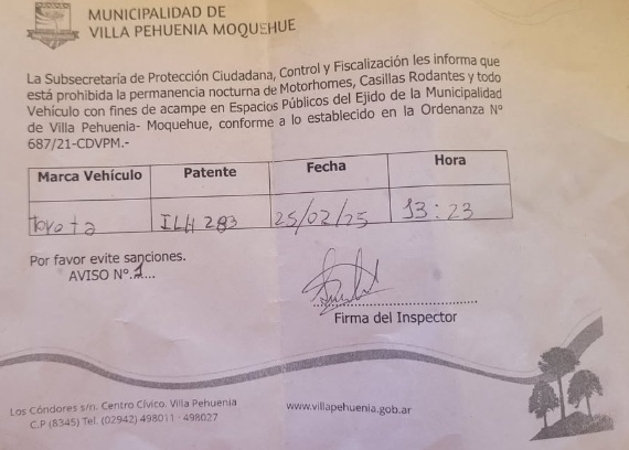 La exintendenta de Villa Pehuenia, Carmen Cordero, (MPN) no sale de su asombro porque le dejaron una notificación en su auto particular que estaba fuera de su casa. Las multas, dijo Cordero, son carísimas y es porque no puede estacionar food truck. Dijo que no era ese el vehículo sino otro en el que traslada insumos para el equipo donde dispensa alimentos. Aprovechó el enojo para quejarse del mal estado de las calles y enrostró a la gestión de su “compañero” Arturo De Gregorio, de recaudar con la tasa vial y no destinarla a ese fin. “Mal que les pese soy vecina de Pehuenia”, escribió la exjefa comunal, disgustada, y sugirió que no la persigan y que trabajen para los ciudadanos. ¡Epa!