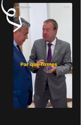 Cuando vio la caja envuelta en una cinta con los colores de la bandera alemana, el gobernador Rolando Figueroa, puso su mejor cara de desconfiado. Hasta que la abrió. El embajador de Alemania, Dieter Lamlé y, lo tuteó y blandió el paquete con la indicación de que era para que firme convenios con el país europeo. El misterio se terminó al abrirlo: una lapicera.