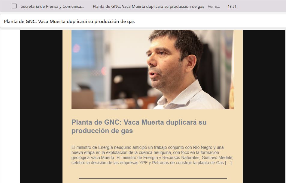 Es un tema sensible en términos políticos para el gobierno de Neuquén. El ministro de Energía, Gustavo Medele, es el epítome de un outsider en la política. Se juntaron estos dos aspectos con el apuro porque mientras duró la puja entre Bahía Blanca y Punta Colorada, el jefe de la cartera energética neuquina mantuvo un silencio que hizo más ruido que el necesario. Al cóctel de sensibilidad, mirar desde afuera alguien le puso una cuota de apuro, y como La Ley de Murphy que postula que “si algo puede salir mal, saldrá mal”, pasó. En lugar de la sigla del Gas Natural Licuado que es el que se exportará salió como Gas Natural Comprimido que es el que se usa para los autos.