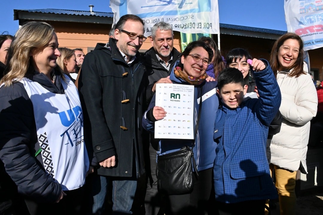 Las viviendas que recibieron los afiliados Unter forman parte del polémico plan Techo Digno. Algunos lo recordaron en el acto, preguntando por qué estaba tan contenta la legisladora “Maru” Martini, teniendo en cuenta que enfrenta una causa judicial por ese mismo proyecto, ejecutado durante su gestión en la Intendencia.