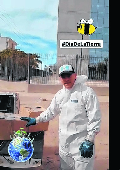 Como si fuera un tutorial de Youtube, el subsecretario de Ambiente de la municipalidad, Francisco Pancho Baggio, mostró cómo recuperó un panal de abejas que se había instalado en el hueco de un paredón de la calle 12 de Septiembre y Pinamar sobre la ciclovía. Fue en el día de la Tierra y Pancho se vistió acorde a la ocasión para evitar picaduras. Así como rescató un coipo y no pudo con el puma de Hiroky, ahora salvó a la reina del panal.