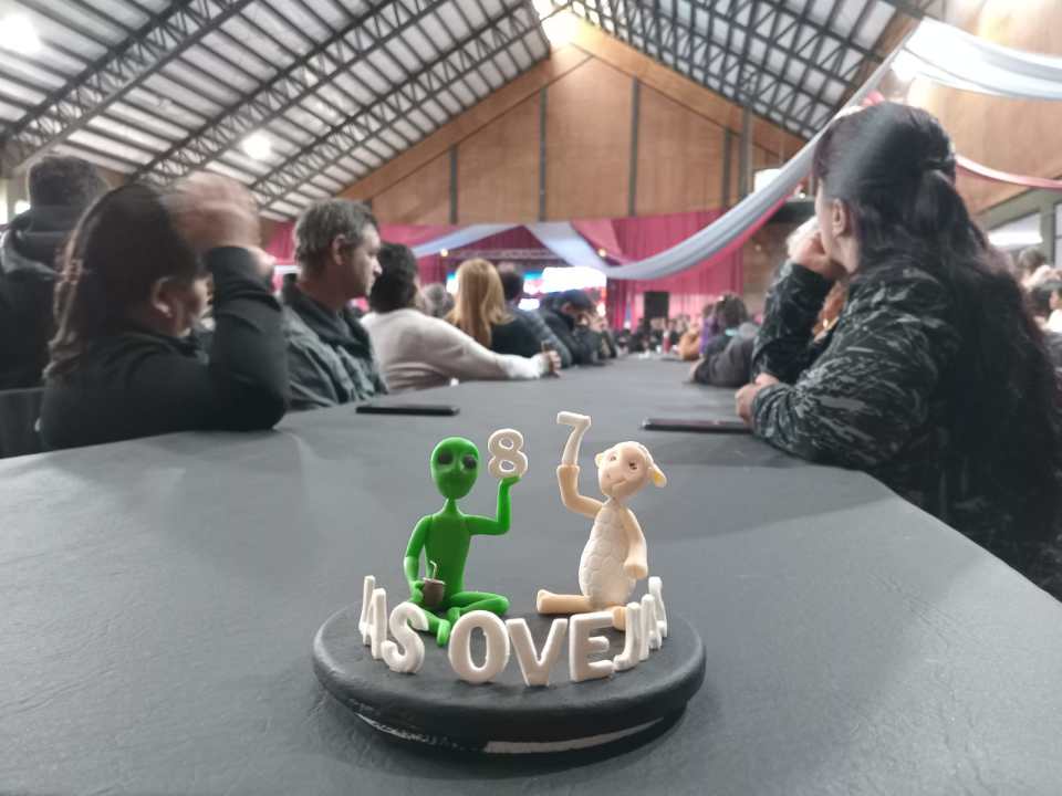 El festejo por los 87 años de vida institucional de Las Ovejas hubo un detalle en los centros de mesa hechos de repostería con un detalle asombroso. Decía el nombre de la ciudad, y había un extraterrestre verde que levantaba el 8 y una oveja, blanca, el 7. Dicen que es en homenaje al exintendente Vicente Godoy quien fue el impulsor del turismo y el avistaje de ovnis en La Puntilla y le dio un vuelco al futuro de la localidad norteña. ¡Felicitaciones!