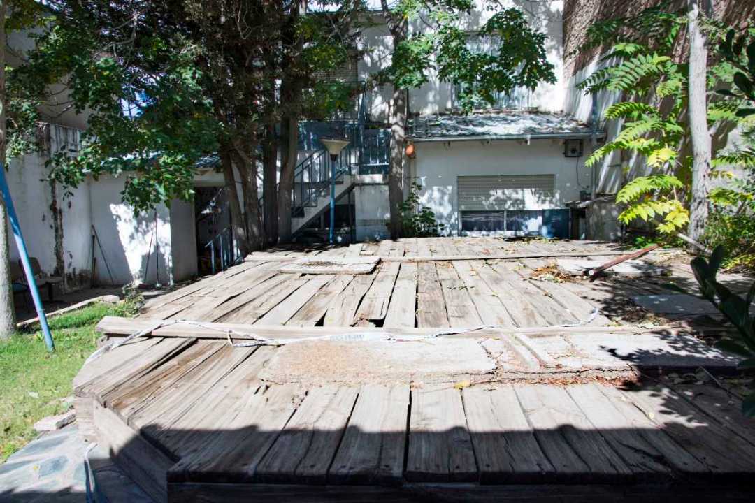 En el patio hay un árbol de gran envergadura, las raíces son un riesgo, ante un temporal de viento. Hay una pileta que el informe afirma que es peligrosa para los chicos que puedan ir. “Su cubierta de madera deteriorada no es suficiente barrera para mitigar el riesgo. También resulta un foco infeccioso por acumulación de agua de lluvia la cual facilita la proliferación de plagas y mosquitos vectores de enfermedades”, destaca.