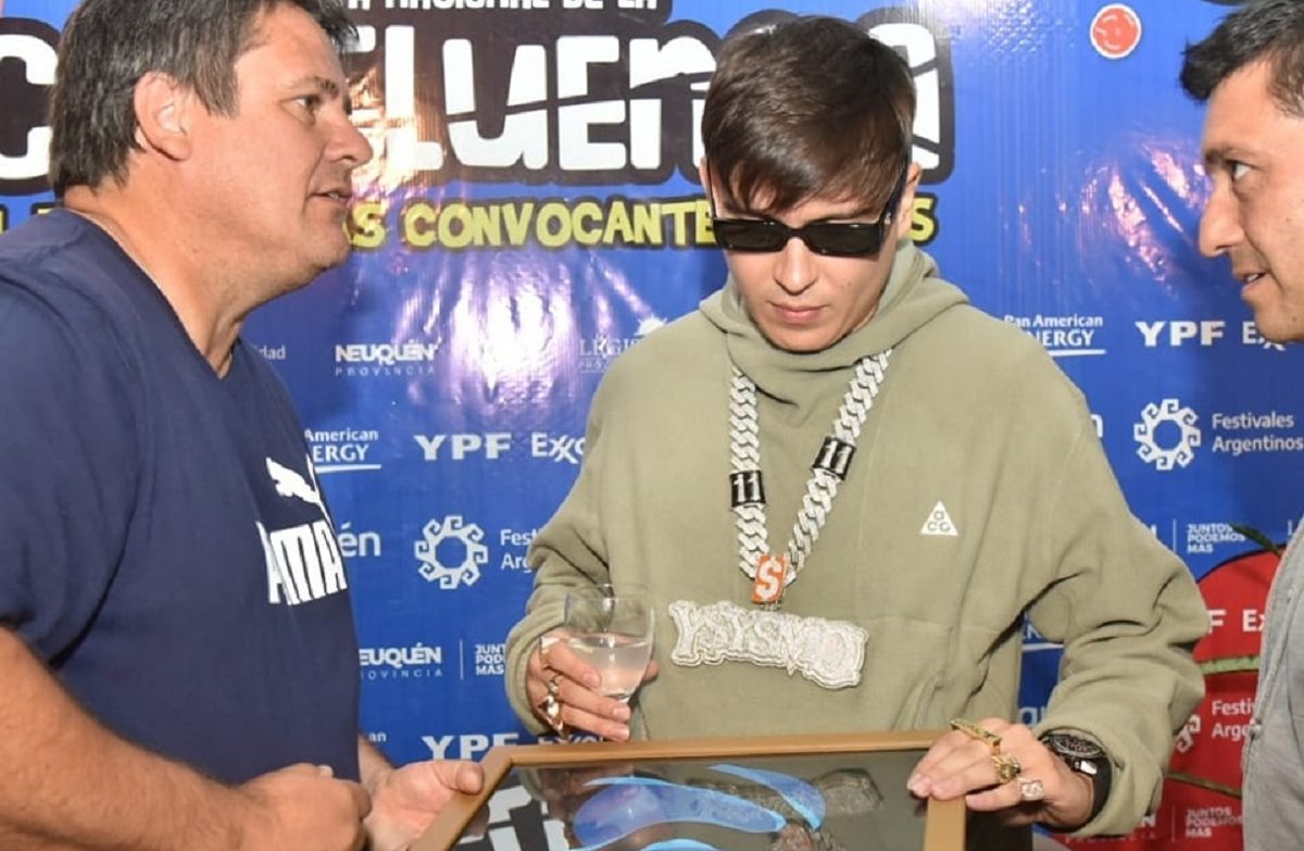 El intendente Mariano Gaido y el vicegobernador Marcos Koopmann, ambos candidatos del MPN, entregaron cuadros a los artistas que participaron el sábado de la Fiesta de la Confluencia, en Neuquén. El acto tuvo su momento incómodo con Duki, seguramente por la vorágine misma de tamaño evento, que se mostró más organizado con YSY A.