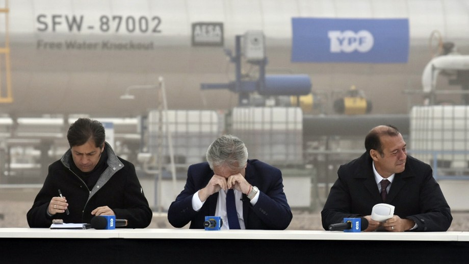 En la foto se lo veía sentado junto a los gobernadores Axel Kicillof y Omar Gutiérrez, notoriamente afectados por el viento. Fue el 21 de abril del pasado, en el yacimiento Loma Campana, emblema de YPF, cuando se realizó el lanzamiento del gasoducto Néstor Kirchner.