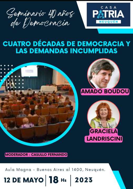 El seminario, que inició cerca de las 18, fue organizado conjuntamente por la Secretaría de Extensión de la Facultad de Humanidades, la Secretaría de Extensión de la UNCO y la Casa Patria Neuquén; y trataba de la historia económica contemporánea del país, desde 1983 en adelante.