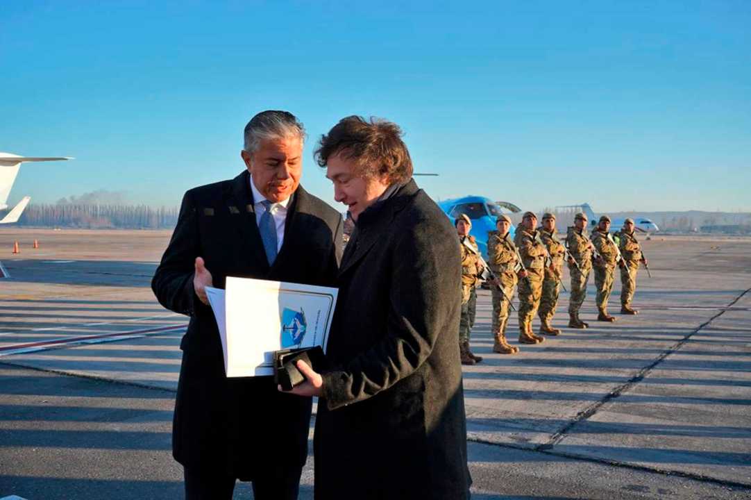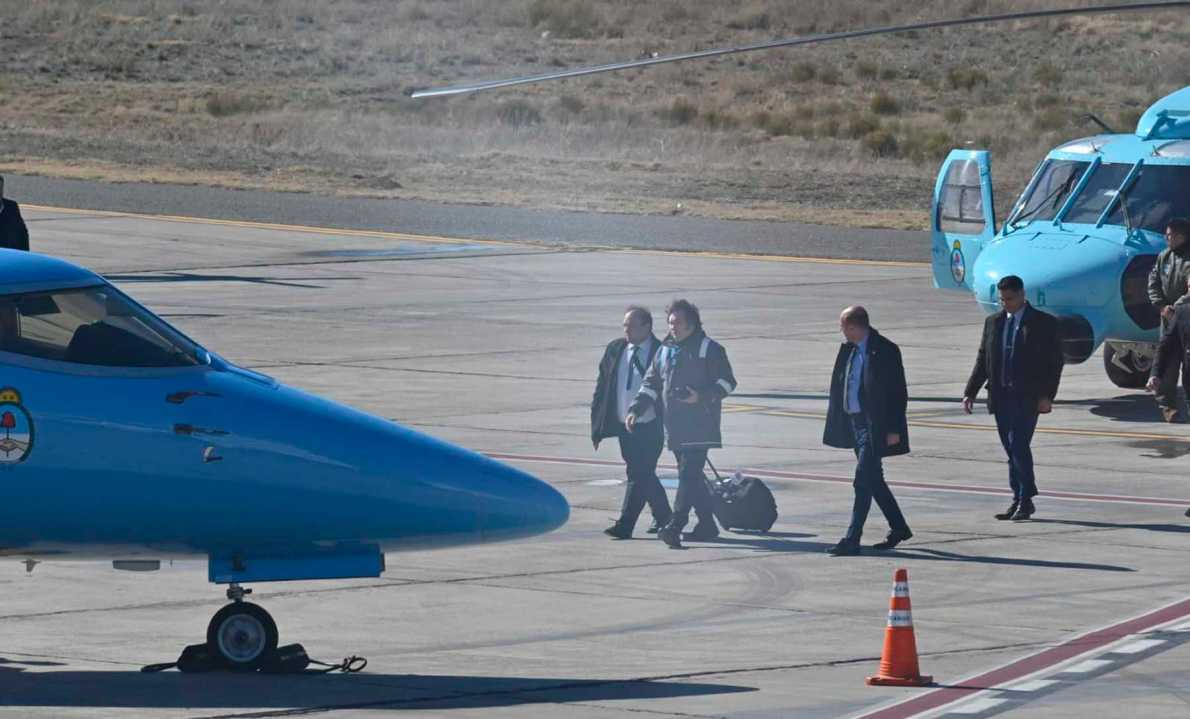 A las nueve puntual, el vuelo que traslada a Javier Milei y su comitiva a Neuquén, aterrizó en el aeropuerto Presidente Perón. Fue recibido por el gobernador Rolando Figueroa.