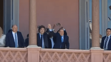 Al término del encuentro, Milei invitó a González Urrutia al mítico balcón que da a la Plaza de Mayo, donde lo esperaban cientos de venezolanos residentes en la Argentina. Lo hizo junto a su esposa, Mercedes López.